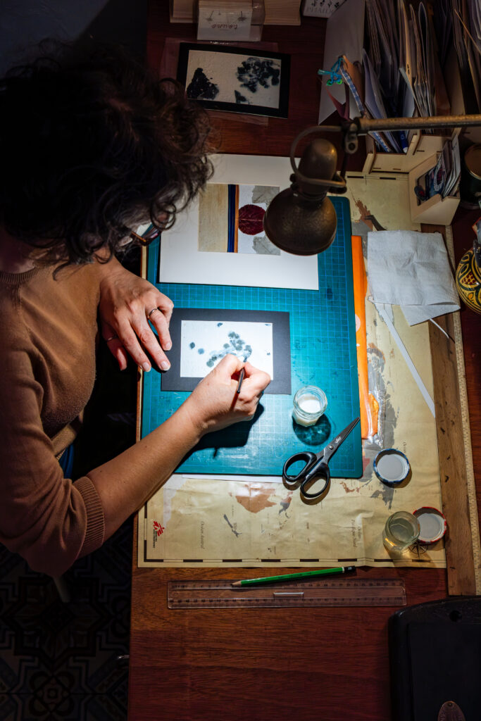 Tout en poésie, je revalorise des végétaux et des peaux de légumes sur du papier artisanal.